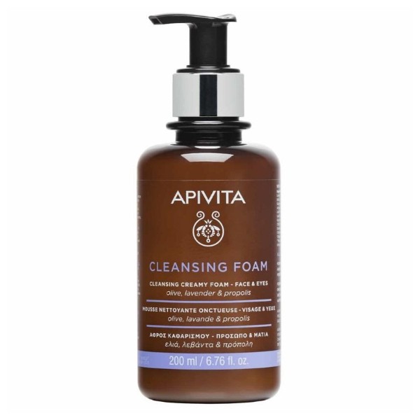 Πρακτικός κρεμώδης αφρός που καθαρίζει απαλά πρόσωπο και μάτια από ρύπους και μακιγιάζ χωρίς να ερεθίζει ή να αφυδατώνει την επιδερμίδα.Οι ήπιοι καθαριστικοί παράγοντες και η φυσική σαπωνάρια (σαπουνόχορτο) που χρησιμοποιείται αντί για σαπούνι, καθαρίζουν αποτελεσματικά χωρίς να ερεθίζουν και χωρίς να αφυδατώνουν την επιδερμίδα του προσώπου και των ματιών.Η ελιά και οι πρωτεΐνες σιταριού ενυδατώνουν και θρέφουν την επιδερμίδα.Το βιολογικό εκχύλισμα λεβάντας καταπραΰνει αποτελεσματικά.Η πρόπολη προσφέρει ήπια αντισηπτική δράση και αντιοξειδωτική προστασία.Κατάλληλος για όλους τους τύπους επιδερμίδαςΗ APIVITA αντικαθιστά το νερό με έγχυμα από βιολογικό πράσινο τσάι για την ισχυρή αντιοξειδωτική του δράση.ΔΕΡΜΑΤΟΛΟΓΙΚΑ ΚΑΙ ΟΦΘΑΛΜΟΛΟΓΙΚΑ ΕΛΕΓΜΕΝΟΣΧΩΡΙΣ SLES