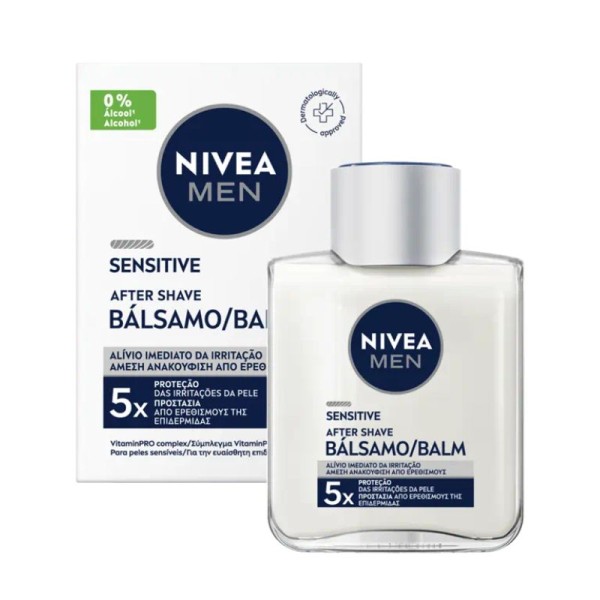 Το NIVEA MEN Sensitive After Shave Balm καταπραΰνει άμεσα τους ερεθισμούς. Ανακουφίζει από την ερυθρότητα και την ξηρότητα της επιδερμίδας χάρη στον συνδυασμό Βιταμίνης Ε, Προβιταμίνης Β5 και Εκχυλίσματος Χαμομηλιού. Για εφαρμογή μετά το ξύρισμα, η εξαιρετικά απαλή σύνθεση με 0% αλκοόλη δεν αφήνει στο δέρμα αίσθηση καψίματος. Για ευαίσθητη επιδερμίδα, με αίσθηση άνεσης και με όψη λεία και υγιής: NIVEA MEN Sensitive After Shave Balm.