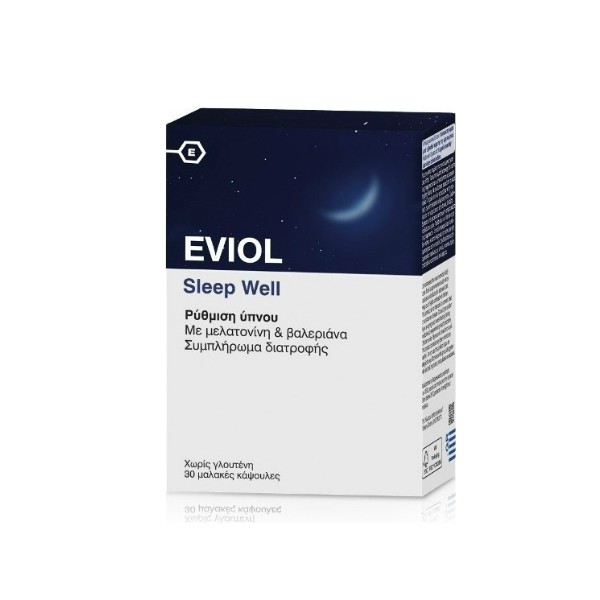 Το συμπλήρωμα διατροφής EVIOL Sleep Well αποτελεί μοναδική σύνθεση βαλεριάνας, μαζί με μελατονίνη η οποία συμβάλλει στη ρύθμιση του ύπνου.H μελατονίνη συμβάλλει:Στη μείωση του χρόνου που χρειάζεται κανείς για να κοιμηθεί.Στην ανακούφιση από το υποκειμενικό αίσθημα της χρονικής υστέρησης του βιολογικού ρολογιού (jet lag).Η Μελατονίνη παράγεται στον ανθρώπινο οργανισμό από την επίφυση κατά τη διάρκεια της νύχτας και βοηθάει στη ρύθμιση του κύκλου ύπνου και αφύπνισης. Εμπλέκεται στην διατήρηση του ομαλού κιρκάδιου ρυθμού (βιολογικό ρολόι του οργανισμού) που παίζει καθοριστικό ρόλο για τον φυσιολογικό ύπνο.Η Βαλεριάνα είναι ένα παραδοσιακό φυτό ευρέως χρησιμοποιούμενο για την ανακούφιση από το στρες και τις διαταραχές ύπνου.Κάθε μαλακή κάψουλα περιέχει 1mg μελατονίνης, ποσότητα βασισμένη σε επιστημονικά δεδομένα και εγκεκριμένη από την Ευρωπαϊκή Αρχή Ασφάλειας Τροφίμων (EFSA) ότι συμβάλλει στη μείωση του χρόνου που χρειάζεται κάποιος για να κοιμηθεί.Το Eviol Sleep Well είναι ιδανικό σε περιπτώσεις:διαταραγμένου ύπνουαϋπνίαςεργασίας με εναλλασσόμενες βάρδιεςταξιδιών σε μακρινούς προορισμούς (jet lag).
