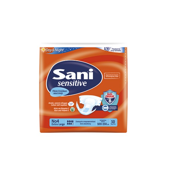 Οι μόνες Sensitive πάνες ακράτειας. Ενδείκνυνται για περιπτώσεις βαριάς μορφής ακράτειας. Με σχεδιασμό Day & Night, με ειδικό υπέρ-απορροφητικό πυρήνα που συγκρατεί την υγρασία στο εσωτερικό και τεχνολογία anti-odour που απορροφά τις οσμές για έως και 8 ώρες. Για διαστάσεις περιφέρειας: 100-150 cm.Δερματολογικά ελεγμένες. Τεχνικά χαρακτηριστικά Απαλό, υγιεινό κάλυμμα, για sensitive προστασία. Ενισχυμένος πυρήνας, που φυλακίζει την υγρασία στο εσωτερικό (3.000 ml). Με τεχνολογία anti-odour που απορροφά τις οσμές για έως και 8 ώρες. Με πλαϊνά αυτοκόλλητα που μπορούν να επανακολληθούν. Ανατομικός σχεδιασμός. Βιταμίνη Ε και εκχύλισμα αλόης.