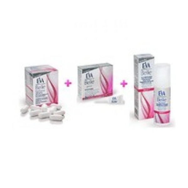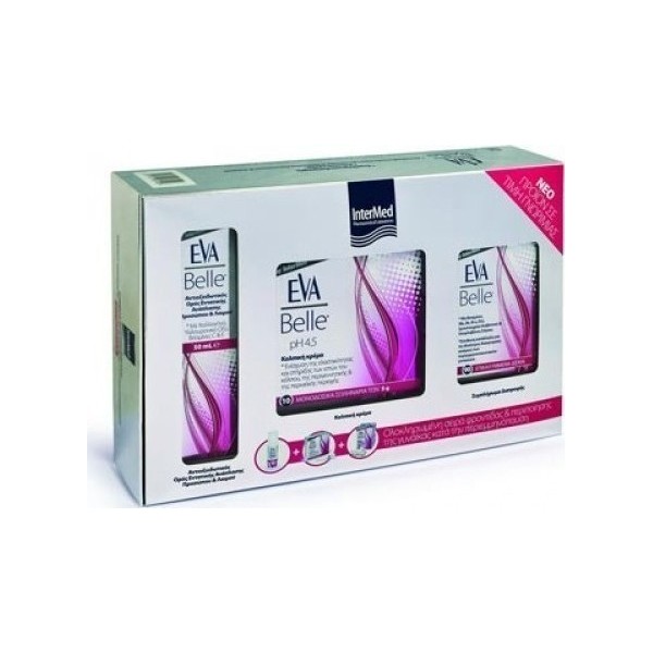 Καθημερινό συμπλήρωμα διατροφής για την κάλυψη των ιδιαίτερων διατροφικών αναγκών της περιεμμηνοπαυσιακής γυναίκας.Με ισοφλαβόνες σόγιας (φυτοοιστρογόνα), βιταμίνη D, βιταμίνες B (B6, B9 - φυλλικο οξύ, B12) και ασβέστιο.Το EVA BELLE tablets συμβάλει στη(ν):Ρύθμιση της ορμονικής δραστηριότητας & την ανακούφιση από σχετικές ανεπιθύμητες ενοχλήσεις όπως οι εξάψεις.Στήριξη της ψυχολογικής λειτουργίας & τη μείωση της κούρασης.Ενίσχυση της φυσιολογικής απορρόφησης και χρήσης του ασβεστίου & του φωσφόρου για την διατήρηση της φυσιολογικής κατάστασης των οστών ,των δοντιών και των μυών.Ενίσχυση της φυσιολογικής λειτουργίας του νευρικού & ανοσοποιητικού συστήματοςΠροαγωγή της κυτταρικής διαίρεσης καθώς και του μεταβολισμού των πρωτεϊνών & του γλυκογόνου.ναγέννηση, ενυδάτωση & προστασία της επιδερμίδας της περι-εμμηνοπαυσιασής γυναίκαςΚαινοτόμο προϊόν.Αντιοξειδωτικός ορός εντατικής ανάπλασης προσώπου & λαιμού.Με ισοφλαβόνες σόγιας, κολλαγόνο, υαλουρονικό οξύ, βιταμίνες C & E.Συγκρατεί την υγρασία της επιδερμίδας αναπλάθοντάς τη σε κυτταρικό επίπεδοΓεμίζει & λειαίνει τις βαθιές ρυτίδεςΠρολαμβάνει τη φωτογήρανση & την πρόωρη γήρανση εξαιτίας της οξειδωτικής φθοράςΒελτιώνει την ελαστικότητα της επιδερμίδαςIntermed Eva Belle Vaginal Cream 10 μονοδισκία των 5gΦροντίδα της κολπικής, περιγεννητικής & περινεϊκής περιοχής της περι-εμμηνοπαυσιακής γυναίκας.Κολπική κρέμα με ισοφλαβόνες σόγιας, κολλαγόνο και υαλουρονικό οξύ για την ενίσχυση της ελαστικότητας & στήριξης των ιστών του κόλπου, της περιγεννητικής & περινεϊκής περιοχής.σε κολπική χαλάρωση κατόπιν τοκετού ή χειρ. επέμβασηςσε ελαφρά ακράτεια ούρων, κοπράνωνσε πρόπτωση πυελικών οργάνων κατόπιν της αντιμετώπισης αυτής, ως μέρος της συντηρητικής αγωγήςπαράλληλα με την πραγματοποίηση ασκήσεων KegelΜε ισοφλαβόνες σόγιας(φυτοοιστρογόνα), κολλαγόνο, υαλουρονικό οξύ, νιασίνη, βιταμίνες C & EΧωρίς: parabens, τεχνητά χρώματα, αρώματα-άοσμο, συμβατό με προφυλακτικάpH 4.5