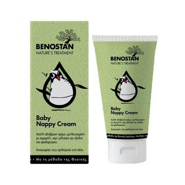 Η χρήση της πάνας μπορεί να προκαλέσει ερεθισμούς και συγκάματα στο δερματάκι του μωρού. Η φυσική σύνθεση της Benostan Baby Nappy Cream προσφέρει συνεχή προστασία αλλά και άμεση ανακούφιση από συγκάματα και ερεθισμούς, χάρις στις υδατο-απωθητικές και καταπραϋντικές ιδιότητες του συνδυασμού του χαμομηλιού με το κερί μέλισσας και το οξείδιο του ψευδαργύρου. Είναι αδιάβροχη, ιδιαίτερα επικαλυπτική και μπορεί να χρησιμοποιηθεί σε κάθε αλλαγή πάνας.