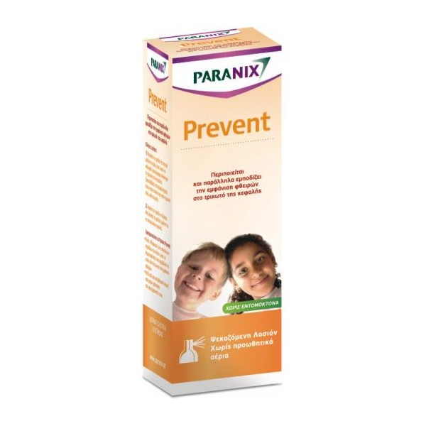 Περιποιείται και παράλληλα εμποδίζει την εμφάνιση φθειρών στο τριχωτό της κεφαλής Ψεκαζόμενη Λοσιόν περιποίησης του τριχωτού της κεφαλής που, επίσης, δρα προληπτικά έναντι του κινδύνου προσβολής του από φθείρες. Χάρη στα φυσικα συστατικά του, όπως το Neem Oil, το Θυμάρι και το Tea Tree Oil, που καλύπτουν τα μαλλιά με ένα προστατευτικό φιλμ, το Paranix Prevent δημιουργεί ένα εχθρικό περιβάλλον που εμποδίζει την προσκόλληση των κονίδων και την εμφάνιση φθειρών.