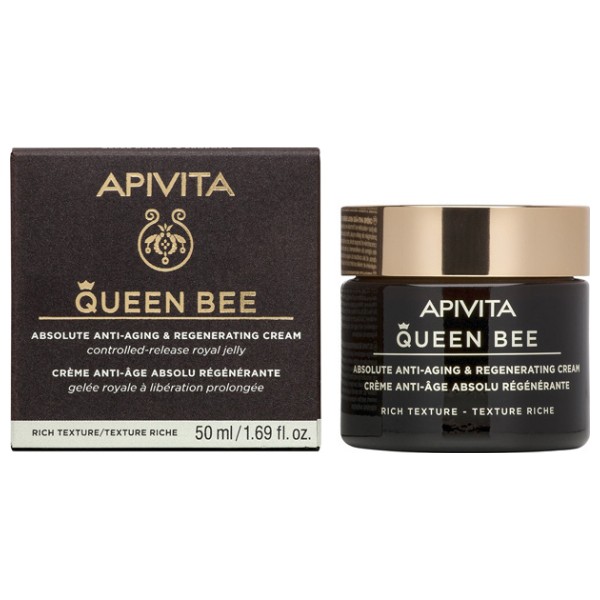 Η μεταξένια κρέμα ημέρας Queen Bee Κρέμα Απόλυτης Αντιγήρανσης & Αναγέννησης της Apivita με πατενταρισμένη τεχνολογία ελεγχόμενης αποδέσμευσης, εξασφαλίζει σταδιακή διάχυση βασιλικού πολτού υψηλής συγκέντρωσης.