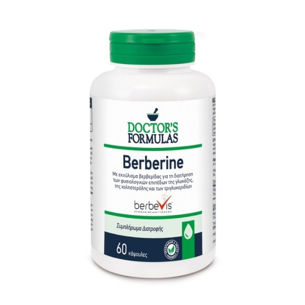 Το DOCTOR’S FORMULAS Berberine είναι ένα συμπλήρωμα διατροφής το οποίο περιέχει χρώμιο και βερβερίνη από εκχύλισμα ρίζας βερβερίδας (Berberis aristata DC). Το εκχύλισμα βερβερίδας βρίσκεται υπό τη μορφή φυτικών λιποσωμάτων, με στόχο τη βελτιστοποίηση της απορρόφησής του. Το χρώμιο συμβάλλει στη διατήρηση των φυσιολογικών επιπέδων γλυκόζης στο αίμα και στο φυσιολογικό μεταβολισμό των μακροθρεπτικών συστατικών. Η βερβερίδα συμβάλλει στη διατήρηση των φυσιολογικών επιπέδων της γλυκόζης, της χοληστερόλης και των τριγλυκεριδίων στο αίμα. Κατάλληλο για χορτοφάγους και vegan.