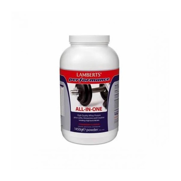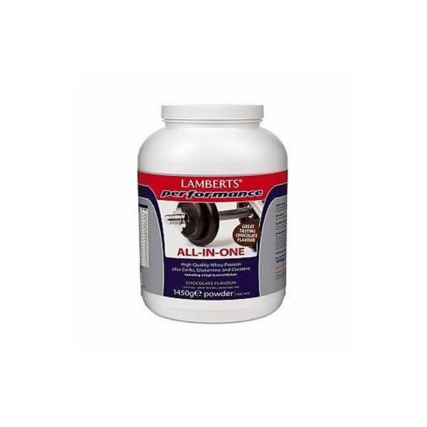 Το νέο προϊόν της Lamberts ALL-IN-ONE με γεύση σοκολάτα είναι ένα φανταστικό προϊόν ειδικά σχεδιασμένο για αθλητές και άτομα που ασχολούνται με τα σπορ. Συνδυάζει πρωτεΐνη ορού γάλακτος υψηλής ποιότητας με υδατάνθρακες, γλουταμίνη και κρεατίνη και περιέχει υψηλά επίπεδα BCAA!Έχουμε σχεδιάσει ένα εξαιρετικό προϊόν για χρήση πριν την άσκηση για αύξηση της αντοχής ή μετά την άσκηση για να βοηθήσει στην αποκατάσταση των μυών.Όπως συμβαίνει με όλες τις φόρμουλες της Lamberts πρωταρχική μας μέριμνα είναι η ποιότητα, για αυτό έχουμε συμπεριλάβει μόνο συστατικά τα οποία είναι επιστημονικά τεκμηριωμένα και εμπεριέχονται σε σημαντικά επίπεδα. Η φόρμουλα αυτή είναι μία από τις καλύτερες ALL-IN-ONE φόρμουλες που κυκλοφορούν στην Αγγλία και παρέχει 38g άριστης ποιότητας πρωτεΐνη ανά δόση, η οποία προέρχεται από ένα μοναδικό μείγμα συμπυκνώσεων και απομονώσεων πρωτεΐνης ορού γάλακτος.