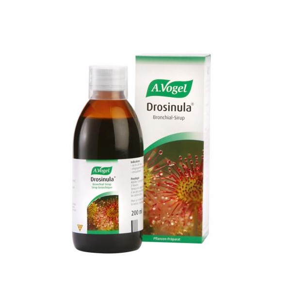 A.Vogel Drosinula 200ml, φυτικό αντιβηχικό, αντισπασμωδικό, βρογχικό σιρόπι.Σιρόπι από φρέσκους βλαστούς Drosera rotundifolia, Hedera Helix, Piceae abietis (δροσέρα. κισσός, αγριοέλατο).Για επίμονο σπαστικό βήχα, βραχνάδα, κοκκύτη, βρογχικό άσθμα, ρευστοποίηση βλεννωδών εκκρίσεων.
