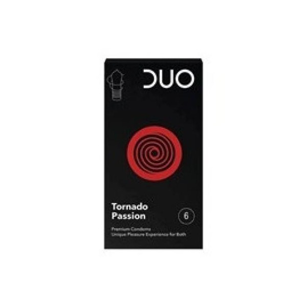 Τα προφυλακτικά DUO Tornado Passion με σχήμα εμπνευσμένο από τον ανεμοστρόβιλο και ραβδώσεις στη βάση εγγυώνται μοναδική εμπειρία και μεγαλύτερη ευχαρίστηση και για τους δύο συντρόφους.