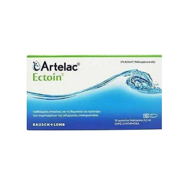 Το Artelac Ecotoin σε Μονοδόσεις χρησιμοποιεί το κυτταροπροστατευτικό Ecotoin, μια 100% φυσική ουσία με αντιφλεγμονώδεις ιδιότητες: Μειώνει τις φλεγμονές του επιπεφυκότα που οφείλονται σε αλλεργιογόνα Ανακουφίζει από τα συμπτώματα των αλλεργιών (ερυθρότητα, κνησμός, δακρύρροια) Προστατεύει από βλαβερές επιπτώσεις των αλλεργιογόνων Υποστηρίζει τη διαδικασία ανάπλασης του ερεθισμένου ή ευαίσθητου επιπεφυκότα2% Ecotoin, Υαλουρονικό οξύ - Χωρίς Συντηρητικά