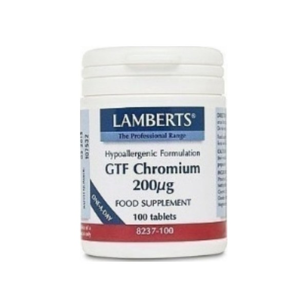 Το GTF Chromium της Lamberts αποτελεί συμπλήρωμα διατροφής που παρέχει εγγυημένα 200μg στοιχειακού χρωμίου . Παρά το γεγονός ότι στον οργανισμό μας βρίσκεται μόνο μια μικρή ποσότητα, το χρώμιο αποτελεί εξαιρετικά σημαντικό ιχνοστοιχείο καθώς συμβάλλει*:• στο φυσιολογικό μεταβολισμό των μακροθρεπτικών συστατικών• στη διατήρηση των φυσιολογικών επιπέδων γλυκόζης στο αίμα.Όπως όλα τα σκευάσματα της Lamberts, παρασκευάζεται εντός του Ηνωμένου Βασιλείου σύμφωνα με τα αυστηρά πρότυπα της Φαρμακευτικής GMP (Pharmaceutical GMP).