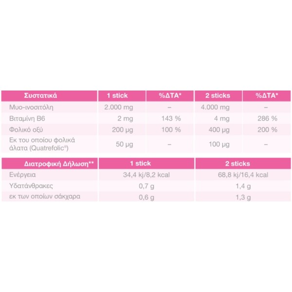 Οι γυναίκες με την επιθυμία να αποκτήσουν παιδιά συνιστάται να λαμβάνουν 2 φακελίσκους (sticks) ημερησίως για να υποστηρίξουν την επαρκή ποσότητα φολικού οξέος ήδη στη φάση πριν από τη σύλληψη.