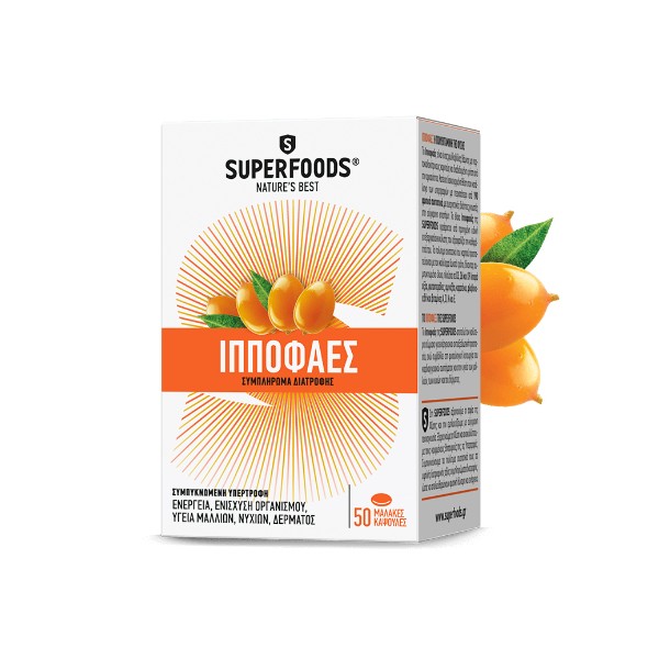 Έλαιο Ιπποφαούς που προέρχεται από προηγμένη ειδική επεξεργασία εκχύλισης που διασφαλίζει υψηλή περιεκτικότητα σε λιποδιαλυτές βιταμίνες και τα πολύτιμα ακόρεστα λιπαρά οξέα (Ω3, Ω6 και Ω9).Αποτελεί τον καλύτερο σύμμαχο για ενέργεια και αντιοξειδωτική προστασία, ενώ συμβάλλει στη φυσιολογική λειτουργία του καρδιαγγειακού συστήματος και στην ομορφιά των μαλλιών, των νυχιών και του δέρματος.Έλαιο Ιπποφαούς που εξασφαλίζει μεγαλύτερη περιεκτικότητα στις σημαντικές λιποδιαλυτές βιταμίνες, τα πολύτιμα ακόρεστα λιπαρά οξέα (Ω3, Ω6 και Ω9) σε σχέση με άλλες μορφές (π.χ. σκληρές κάψουλες με ξηρά εκχυλίσματα). Υπερκρίσιμη εκχύλιση ως μέθοδος επεξεργασίας για διασφάλιση: Υψηλής διατροφικής αξίας Καθαρότητας1 ΚΑΨΟΥΛΑ αντιστοιχεί σε 400 ΚΑΡΠΟΥΣ IπποφαούςΠΡΟΤΕΙΝΕΤΑΙ ΣΕ Όσους επιζητούν μία φυσική λύση για επιπλέον ενέργεια Άτομα με απαιτητική καθημερινότητα που αναζητούν τόνωση Άνδρες άνω των 40 ετών για καλή υγεία καρδιαγγειακού Άτομα με αδύναμα μαλλιά και νύχια Άτομα που θέλουν να χαρίσουν λάμψη στο δέρμα τουςΧΩΡΙΣΓλουτένη, Ζάχαρη, Λακτόζη, Σόγια