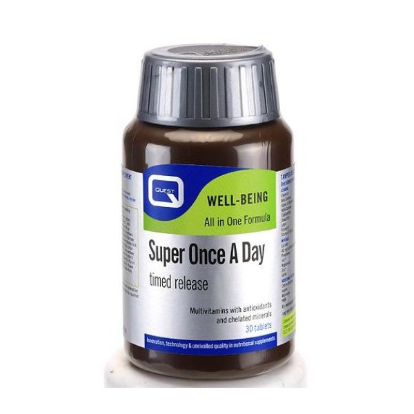 Το συμπλήρωμα διατροφής Super Once A Day Timed Release της Quest σχεδιάστηκε για όσους θέλουν να διατηρήσουν μια βέλτιστη υγεία και καλή φυσική κατάσταση. Επίσης, αποτρέπει τη συσχετιζόμενη με τον τρόπο ζωής ανεπάρκεια των απαραίτητων θρεπτικών συστατικών, προστατεύει τα κύτταρα από οξειδωτική βλάβη που προκαλείται από τοξίνες και από το περιβάλλον, προσφέρει ενέργεια και ζωντάνια, ελαττώνοντας την κόπωση, ενισχύει την απόκριση του ανοσοποιητικού συστήματος και υποστηρίζει την αυτοσυγκέντρωση και τη μνήμη. 30 ταμπλέτες Αυτό το προϊόν περιέχει σίδηρο ο οποίος, αν ληφθεί υπερβολικά, μπορεί να είναι επιβλαβής για πολύ μικρά παιδιά. Κρατήστε το μακριά από αυτά.