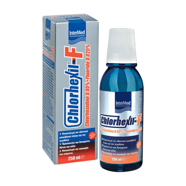 Το Chlorhexil-F Mouthwash είναι φθοριούχο στοματικό διάλυμα, με ήπια αντισηπτική δράση για την καθημερινή υγιεινή περιποίηση της στοματικής κοιλότητας, τον αποτελεσματικό έλεγχο της ουλοοδοντικής μικροβιακής πλάκας, τη ενδυνάμωση της αδαμαντίνης των δοντιών και την ενεργοποίηση του αμυντικού συστήματος των ούλων χάρη στη ποικιλία βοτάνων που υπάρχουν στη σύνθεσή του.Το Chlorhexil-F Mouthwash είναι απαραίτητο για την καθημερινή διατήρηση του θεραπευτικού αποτελέσματος μετά από περιοδοντική θεραπεία ΕΝΔΕΙΞΕΙΣ • Καθημερινή ολοκληρωμένη φροντίδα και προστασία των δοντιών και των ούλων• Ως αγωγή συντήρησης σε περιοδοντικούς ασθενείς