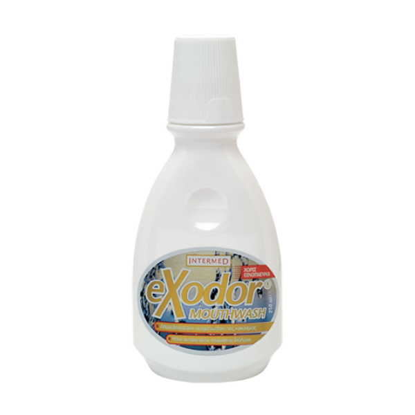 Το Εxodor Mouthwash είναι καθημερινό, ήπιο αντισηπτικό στοματικό διάλυμα για την αντιμετώπιση της κακοσμίας του στόματος, μέσω της άμεση εξουδετέρωσης των δύσοσμων ενώσεων και τον δραστικό έλεγχο των μικροοργανισμών που προκαλούν κακοσμία στη στοματική κοιλότητα.ΕΝΔΕΙΞΕΙΣ• Κακοσμία του στόματοςΜε τους αντιμικροβιακούς παράγοντες ( Cetylpyridinium Chloride, Domiphen Bromide,Chlorhexidine Digluconate, Triclosan), φθόριο (250ppm F-), Ιόντα Ψευδαργύρου,  Sodium Bicarbonate, Ammonium Glycyrrhizate, Panthenol, Bisabolol, Allantoin.Χωρίς την παρουσία οινοπνεύματος.