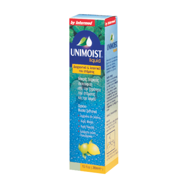 Το Unimoist Liquid είναι ειδικά σχεδιασμένο υγραντικό & λιπαντικό υγρό για τη μακράς διάρκειας ανακούφιση από την ξηρότητα του στόματος και του λαιμού η οποία οφείλεται σε οποιαδήποτε αιτία.
