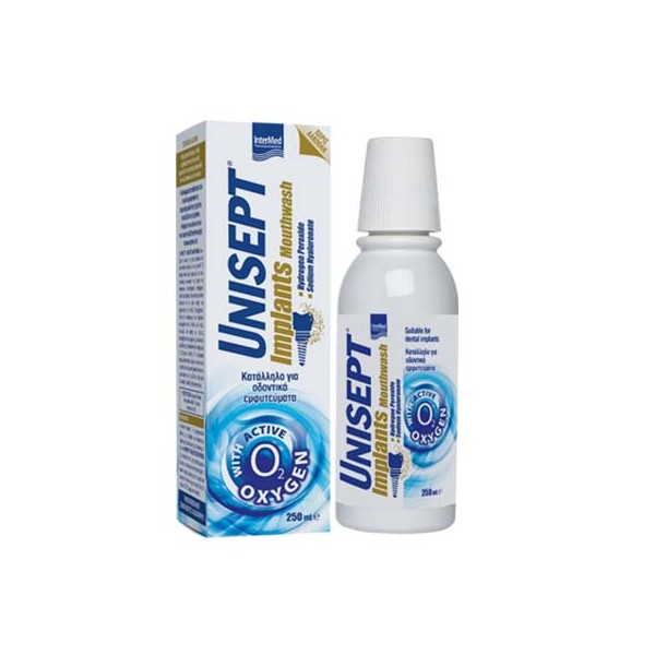 Τo Unisept Implants Mouthwash όταν έρθει σε επαφή με τη σίελο, διασπάται και απαλευθερώνει "οξυγόνο εν τω γεννάσθαι".