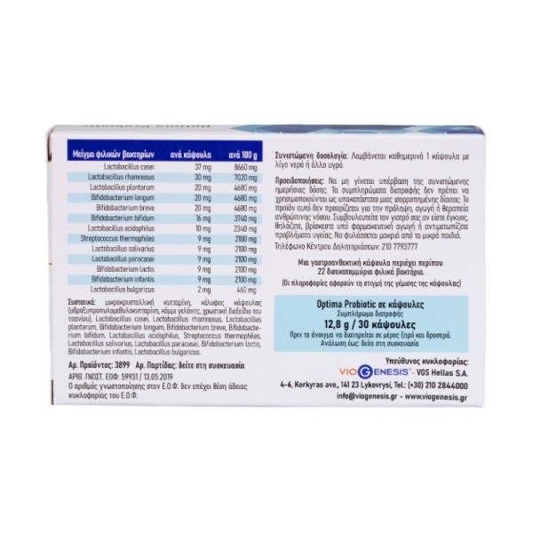 Το Optima Probiotic είναι µια φόρµουλα προβιοτικών περιεκτικότητας 22 δις ανά κάψουλα µε 13 στελέχη, εντερικής απορρόφησης που προάγουν την καλή γαστρεντερική υγεία.