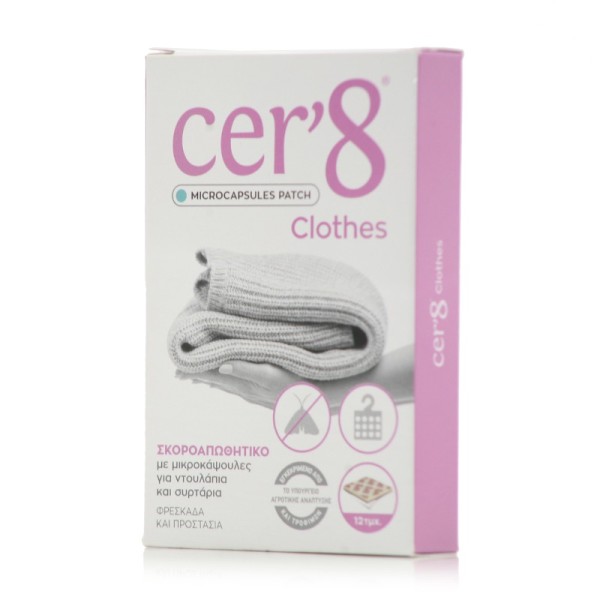 Το Cer'8 Clothes είναι ένα σκοροαπωθητικό για τα ρούχα σας σε μορφή μικροκάψουλας, το οποίο προστατεύει απο τον σκόπο, ενώ δίνει επιπλέον προστασία από δυσοσμίες και μυρωδιές.