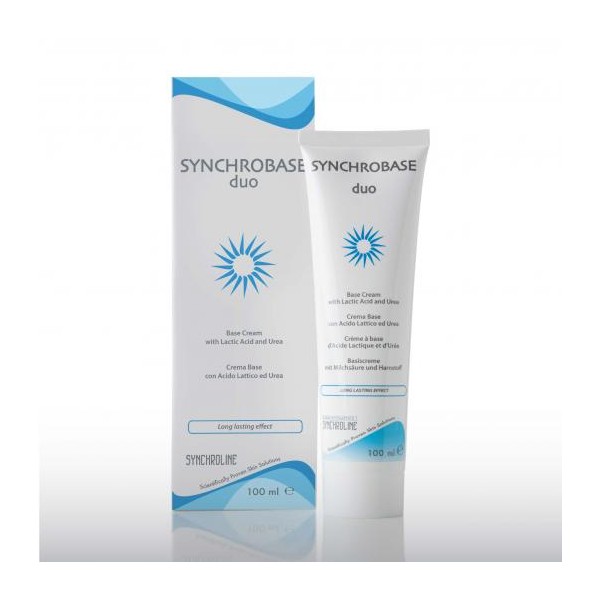 SYNCHROBASE DUO, με γαλακτικό οξύ και ουρία, είναι ένα γαλάκτωμα με Oleosomes, που χρησιμοποιείται για την περιποίηση του ξηρού δέρματος και την περοετοιμασία γαληνικών σκευασμάτων. Ενδείκνυται για την εντατική περιποίηση των παιδικών δερμάτων με έντονη αφυδάτωση, απολέπιση και τάση υπερκεράτωσης. 100ml