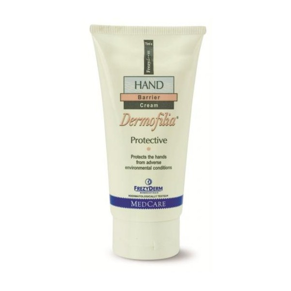 Προστατευτική κρέμα χεριών με διπλή δράση: Ειδική σύνθεση με υδρόφοβα και υδρόφιλα συστατικά. Εξασφαλίζει προστασία από δυσμενείς περιβαλλοντικούς παράγοντες και αντιμετωπίζει δερματικά προβλήματα ξηροδερμίας, τραχύτητας κλπ. Ενδείκνυται για την προστασία των χεριών από τα απορρυπαντικά, διαλυτικά, χρώματα, σκόνες, κρύο, συχνά πλυσίματα καθώς επίσης για την περιποίηση και βελτίωση των προβληματικών χεριών, που υποφέρουν από ξηροδερμία, τραχύτητα, ατοπικά συμπτώματα κλπ.