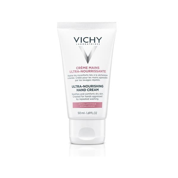 Η ενυδατική κρέμα χεριών Ultra Nourishing Hand Cream της Vichy καταπραΰνει και προστατεύει τα ταλαιπωρημένα χέρια από το καθημερινο πλύσιμο και την ξηρότητα.