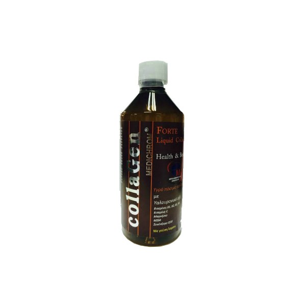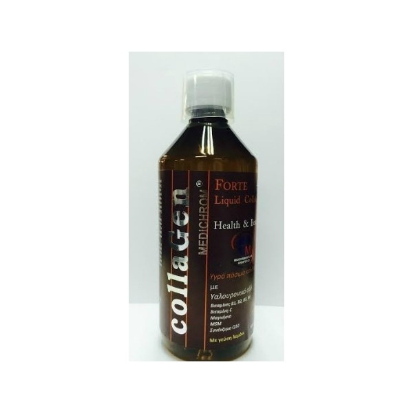 Με στέβια! Κατάλληλο και για διαβητικούς!Το κολλαγόνο είναι η βασική πρωτεΐνη του ανθρώπινου σώματος και κύριο συστατικό πολλών δομών όπως τα οστά, οι αρθρώσεις, οι μύες, οι τένοντες, το δέρμα και η επιδερμίδα. Αντιπροσωπεύει το 30% των πρωτεϊνών του σώματος και το 75% των πρωτεϊνών του δέρματός μας. Είναι υπεύθυνο για την ελαστικότητα, την ενυδάτωση και την ανάπλαση της επιδερμίδας. Ως κύρια θρεπτική ουσία και δομικό υλικό του συνδετικού ιστού, είναι απαραίτητο για τη συντήρηση των αρθρώσεων, των οστών και των μυών.Από την ηλικία των 25 ετών ή λόγω ασθενειών, η παραγωγή κολλαγόνου στο σώμα μας ελαττώνεται ενώ μετά την ηλικία των 40, παράγεται πλέον πολύ μικρή ποσότητα κολλαγόνου. Ως φυσικό επακόλουθο, το δέρμα λεπταίνει, χάνει τον όγκο και τη σφριγηλότητά του και αφυδατώνεται εμφανίζοντας προδιάθεση στη δημιουργία ρυτίδων και ορατά σημάδια γήρανσης. Παράλληλα, η έλλειψη κολλαγόνου προκαλεί φθορά σε αρθρώσεις, χόνδρους και μυς, δυσκαμψία, τάση για ασθένειες των αρθρώσεων όπως η οστεοαρθρίτιδα.To COLLAGEN MEDICHROM® περιέχει επίσης υαλουρονικό οξύ, βιταμίνες Β1, Β2, Β5, Β6, C, μαγνήσιο, MSM και συνένζυμο Q10. Η ενισχυμένη του σύσταση προσφέρει αντιγηραντική δράση, υγιείς αρθρώσεις, λαμπερή επιδερμίδα, ισχυρό ανοσοποιητικό και ενέργεια.