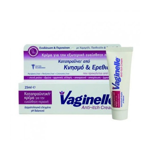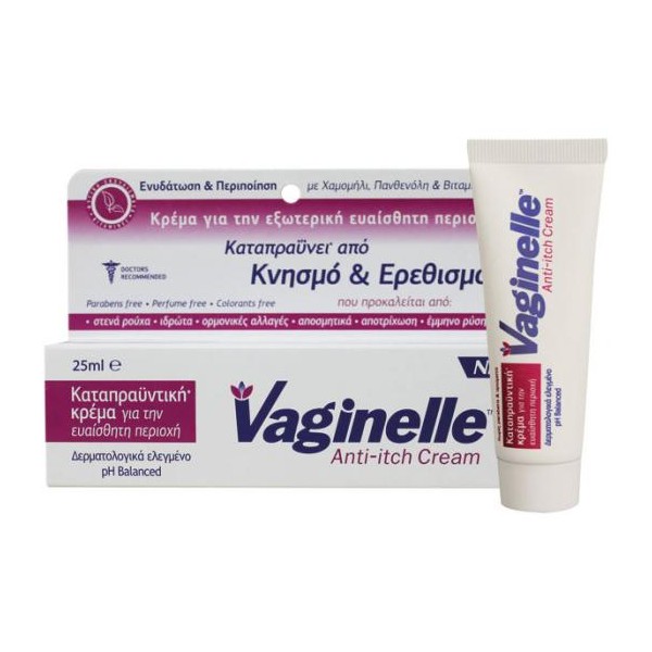 Η κρέμα Vaginelle με την προηγμένη σύνθεση της, καταπραϋνει τον κνησμό και τον ερεθισμό του δέρματος της ευαίσθητης περιοχής.Ο μοναδικός συνδυασμός φυσικών ενεργών συστατικών παρέχει υψηλή αντικνησμική, αντιφλεγμονώδη  αντιερεθιστική, και ενυδατική δράση.Με φυτικά εκχυλίσματα χαμομηλιού & βιταμίνες E & B5 (Πανθενόλη) που προστατεύουν το δέρμα.Σύνθεση κατά της κακοσμίαςΣέβεται το pH & τη χλωρίδα του δέρματοςΔεν είναι λιπαρή & δεν λερώνει