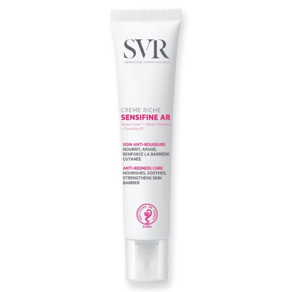 Η SENSIFINE AR Crème Riche είναι ειδικά σχεδιασμένη για δέρματα που παρουσιάζουν ερυθρότητα, αίσθημα καύσου και εξάψεις, με τάση για κοκκινίλα. Χάρη στη νέα της σύνθεση, καταπραΰνει και μειώνει ορατά την τοπική ή διάχυτη ερυθρότητα, το αίσθημα καύσου και την ενόχληση του δέρματος. Η επιδερμική φραγή ενισχύεται και το δέρμα είναι λιγότερο ευαίσθητο. Η θρεπτική, μη λιπαρή κρεμώδης υφή της ενυδατώνει έως και 48 ώρες