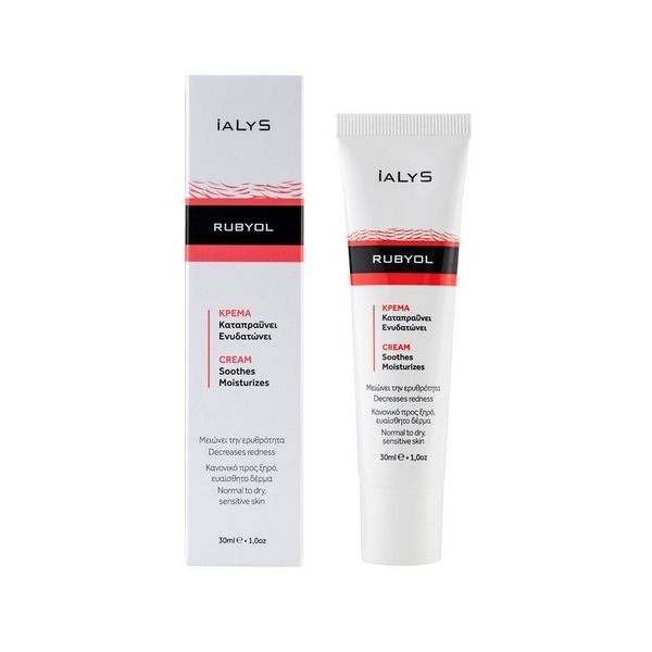 Η iALYS Rubyol Cream είναι μια κρέμα κατάλληλη για τη διάχυτη ή μόνιμη ερυθρότητα του προσώπου, που εμφανίζει έντονο αίσθημα καύσου και ερεθισμού. Μειώνει την ερυθρότητα, τους ερεθισμούς και το αίσθημα καύσου, προσφέροντας άνεση στην επιδερμίδα. Περιέχει: