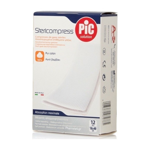 Pic Solution Stericompress Αποστειρωμένες Γάζες από Αγνό Βαμβάκι 18x40cm 12Τμχ