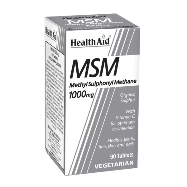 Το MSM της HealthAid παρασκευάζεται χρησιμοποιώντας σαν πρώτη ύλη την πατενταρισμένη από την Αμερική μορφή οργανικού θείου, μαζί με βιταμίνη C, δημιουργώντας ένα βιοδιαθέσιμο, αξιόπιστο και άμεσα απορροφήσιμο προϊόν, για μέγιστα αποτελέσματα. Αντιμετωπίζει τους πόνους οστών και αρθρώσεων, τόσο σε περιπτώσεις οστεοαρθρίτιδας όσο και αθλητικών τραυματισμών. Επίσης συμβάλλει στην παραγωγή κολλαγόνου και κερατίνης, βοηθώντας τα αδύναμα μαλλιά και νύχια και την ελαστικότητα του δέρματος.