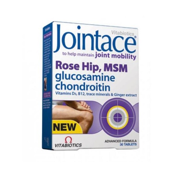 Το συμπλήρωμα διατροφής JOINTACE Rose Hip, MSM της Vitabiotics περιέχει ανά δύο ταμπλέτες 1000mg θειικής γλυκοσαμίνης, 500mg MSM και 100mg εκχυλίσματος Rose Hip. Η θειική γλυκοσαμίνη αποτελεί δομικό συστατικό του χόνδρου των αρθρώσεων και συμβάλλει στην κινητικότητα και την ευκαμψία των χόνδρων, των συνδέσμων και των τενόντων, ενώ παράλληλα μειώνει τον πόνο μέσω της μείωσης της φλεγμονής στα σημεία αυτά. Το MSM (Methylsulfonylmethane) βοηθά στην υποστήριξη των συνδετικών ιστών και την κινητικότητα των αρθρώσεων, ενώ παράλληλα έχει και ισχυρή αντιφλεγμονώδη δράση. Το εκχύλισμα Rose Hip περιέχει ενεργά συστατικά όπως φυσικά αντιφλεγμονώδη, που μπορούν να βοηθήσουν στη μείωση του πόνου και την κινητικότητα των αρθρώσεων. Οι βιταμίνες και τα μέταλλα συμβάλλουν στην καλή υγεία των αρθρώσεων μέσω της εμπλοκής τους στα μονοπάτια της φλεγμονής, μέσω της αντιοξειδωτικής τους δράσης ή μέσω της συμβολής τους στην υγεία των οστών και το μεταβολισμό του ασβεστίου.Χαρακτηριστικά Σύνθεσης- Συνεργιστική δράση θειικής γλυκοσαμίνης και θειικής χονδροϊτίνης- Εκχύλισμα ginger και rose hip- MSM