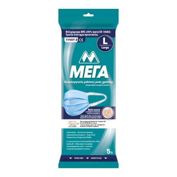 Χειρουργικές μάσκες (TYPE II) μίας χρήσεως, μέγεθος Large .