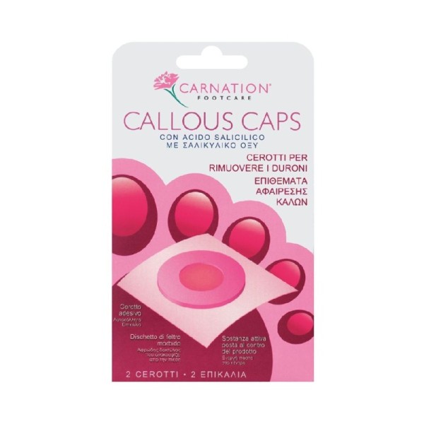 ΤοCarnation Callous Caps περιέχει μια μοναδική κρέμα σαλικυλικού οξέος, η οποία εισχωρεί στους σκληρούς κάλους και βοηθά στην αφαίρεση τους ενώ ταυτόχρονα το αφρώδες δαχτυλίδι ανακουφίζει από την πίεση του υποδήματος.