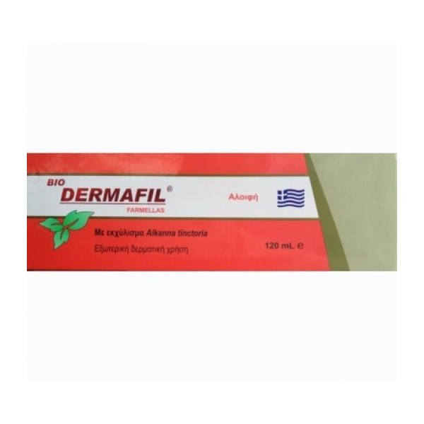 Η BIO DERMAFIL είναι μια αλοιφή αναδόμησης εξειδικευμένης δράσης για το σώμα. Προσφέρει τόνωση και προστασία στο ταλαιπωρημένο δέρμα και έχει καταπραυντική δράση. Περιέχει εκχύλισμα των ριζών του φυτού Alkanna tinctoria (L.) Tausch και έλαιο Calendula officinalis (L.).Τα συστατικά των παραπάνω φυτών εκδηλώνουν καλύτερα τη δραστικότητά τους όταν διαλύονται σε λιπόφιλη βάση. Γι΄αυτό το λόγο η αλοιφή περιλαμβάνει, επίσης, ελαιόλαδο, κερί μέλισσας και μαστίχα. Προσφέρει ανακούφιση και τόνωση σε δέρμα με πληγές, εγκαύματα, χρόνια προβλήματα όπως έλκη διαφόρων αιτιολογιών, κατακλίσεις, αιμορροίδες, πληγές διαβητικών.• Ενδυναμώνει τα πάσχοντα σημέια και διατηρεί το δέρμα σε καλή κατάσταση.