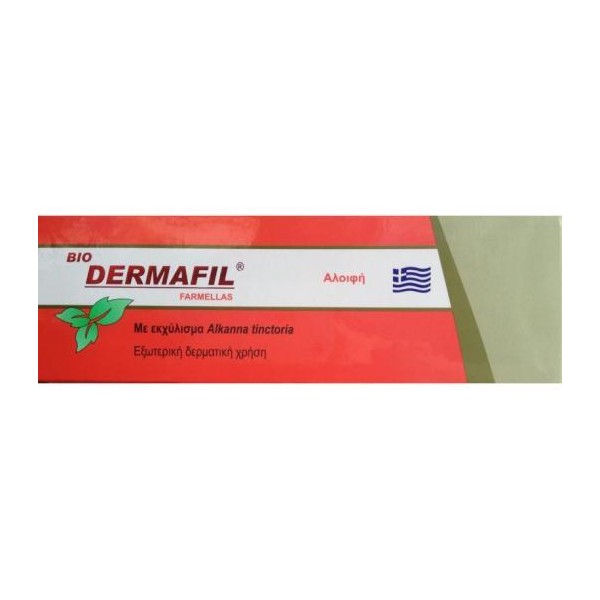 Φυσική και αποτελεσματική λύση για την επούλωση πληγών Η BIO DERMAFIL είναι μια αλοιφή αναδόμησης εξειδικευμένης δράσης για το σώμα. Προσφέρει τόνωση και προστασία στο ταλαιπωρημένο δέρμα και έχει καταπραυντική δράση. Περιέχει εκχύλισμα των ριζών του φυτού Alkanna tinctoria (L.) Tausch και έλαιο Calendula officinalis (L.).Τα συστατικά των παραπάνω φυτών εκδηλώνουν καλύτερα τη δραστικότητά τους όταν διαλύονται σε λιπόφιλη βάση. Γι΄αυτό το λόγο η αλοιφή περιλαμβάνει, επίσης, ελαιόλαδο, κερί μέλισσας και μαστίχα.Χρήση:Η αλοιφή BIO DERMAFIL χρησιμοποιείται στις ακόλουθες περιπτώσεις:• Προσφέρει ανακούφιση και τόνωση σε δέρμα με πληγές, εγκαύματα, χρόνια προβλήματα όπως έλκη διαφόρων αιτιολογιών, κατακλίσεις, αιμορροίδες, πληγές διαβητικών.• Ενδυναμώνει τα πάσχοντα σημέια και διατηρεί το δέρμα σε καλή κατάσταση.