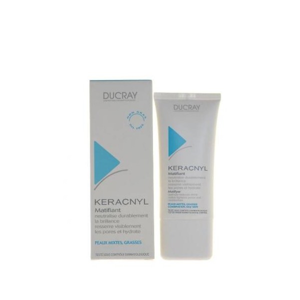 H κρέμα Keracnyl Matifiant δεσμεύει και μειώνει το υπερβολικό σμήγμα.Απολεπίζει με απαλότητα, συσφίγγει και αποσυμφορεί τους πόρους.Ενυδατώνει το δέρμα.Προστατεύει από τις ελεύθερες ρίζες και προλαμβάνει τα πρώτα σημάδια γήρανσης.Το δέρμα σας αποκτά ματ όψη όλη την ημέρα (8 ώρες), το ανάγλυφο του γίνεται λείο, οι πόροι σφίγγουν.Μη λιπαρό γαλάκτωμα oil-free.Ιδανικό ως βάση μακιγιάζ.ΥποαλλεργικόΜη φαγεσωρογόνοΧωρίς Paraben.