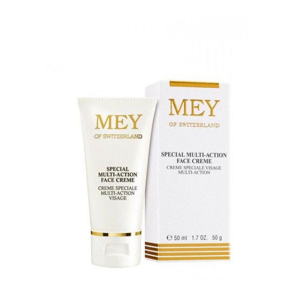 Το προϊόν MEY SPECIAL MULTI ACTION FACE CREAM αποτελεί ενυδατική κρέμα, 24ωρης φροντίδας, για κανονικά/μεικτά δέρματα, που περιέχει βιταμίνες, συστατικά που εμποδίζουν τον πολλαπλασιασμό των ελευθέρων ριζών (υαλουρονικό οξύ & σύμπλεγμα βλαστοκυττάρων), ουσίες που διαθέτουν ενυδατικές και αναζωογονητικές ιδιότητες (πανθενόλη, βιταμίνες Α και Ε) και φυτικά εκχυλίσματα με μαλακτικές, αντιφλογιστικές και τονωτικές ιδιότητες.