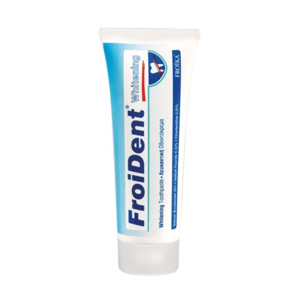 Η FROIDENT Whitening είναι μια οδοντόκρεμα κατάλληλη για την καθημερινή στοματική υγιεινή που βοηθά στην απομάκρυνση της χρώσης από τα δόντια που προέρχεται από τροφές, τον καφέ, το κάπνισμα, τη λήψη φαρμάκων κλπ. Ενώ παράλληλα αποκαθιστά τη γυαλάδα και την λαμπρότητα του σμάλτου, επαναφέροντας στα δόντια τη φυσική τους λευκότητα.