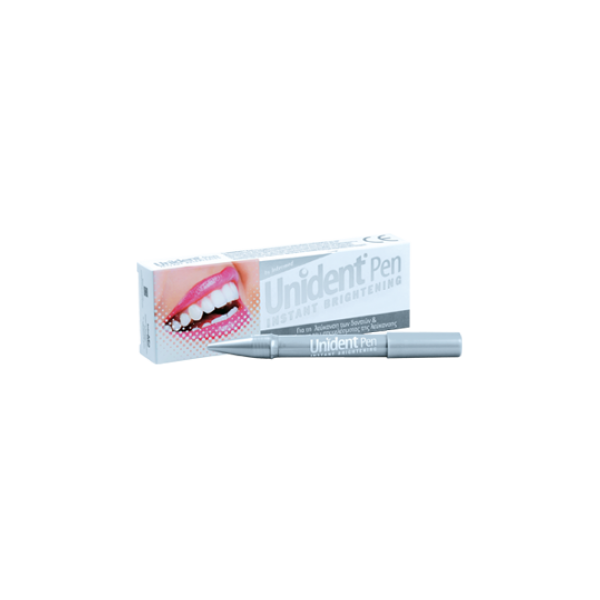 Το Unident Pen είναι πρωτοποριακό προϊόν σε μορφή στυλό για λευκότερα δόντια και λαμπερό χαμόγελο. Λευκαίνει τα δόντια σε 14 ημέρες και διατηρεί το αποτέλεσμα της λεύκανσης του ιατρείου γρήγορα, εύκολα και με ασφάλεια για μεγαλύτερο χρονικό διάστημα. ΕΝΔΕΙΞΕΙΣ • Για τη λεύκανση των δοντιών• Για τη διατήρηση του αποτελέσματος της λεύκανσης που πραγματοποιείται στο ιατρείο