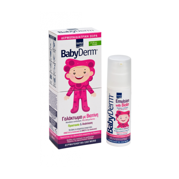 Το Babyderm Emulsion είναι ειδικά σχεδιασμένο κρεμογαλάκτωμα με βιοτίνη, για την ανάπλαση και προστασία της ευαίσθητης βρεφικής και παιδικής μηρογεννητικής περιοχής (περιοχή της πάνας) από ερεθισμούς & φλεγμονές.ΕΝΔΕΙΞΕΙΣΕνίσχυση της ανάπλασης και ανακούφιση του δέρματος της βρεφικής και παιδικής μηρογεννητικής περιοχής.Με βιοτίνη, οξείδιο του ψευδαργύρου (ZnO), απαραίτητα Ω3 και Ω6 λιπαρά οξέα, εκχυλίσματα δερμοκοσμητικών βοτάνων (χαμομήλι, γλυκύριζα, βοράγινο, αγριοτριανταφυλλιά, καλεντούλα, αλόη, μολόχα, αζαντιράχτα, α-bisabolol) & δερμοπροστατευτικές βιταμίνες (πανθενόλη, βιταμίνη Ε).Χωρίς χρώματα & ερεθιστικά αρώματα.Δερματολογικά ελεγμένη με ουδέτερο pH.