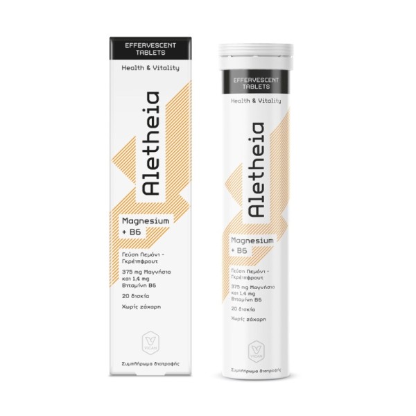 Συμπλήρωμα διατροφής με 375 mg Μαγνήσιο και 1,4 mg Βιταμίνη B6 με γεύση Λεμόνι & Γκρέιπφρουτ.