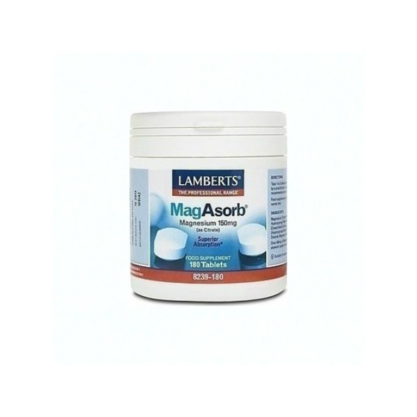 Κάθε ταμπλέτα αποδίδει: Magnesium (as Citrate) 150mg Ταμπλετοποίηση με: Modified Starch, Cellulose, Hydroxypropyl Methylcellulose, Crosslinked Cellulose Gum, Tablet Coating (Hydroxypropyl Methylcellulose, Glycerin), Silicon Dioxide, Stearic Acid, Magnesium Stearate.Χρόνος αφομοίωσης: Λιγότερο από 1ώραΚατάλληλο για χορτοφάγουςΧρήση: Σύμφωνα με επίσημες έρευνες, το 72% των γυναικών και το 42% των ανδρών στο Ηνωμένο Βασίλειο δεν λαμβάνουν επαρκές μαγνήσιο μέσω της διατροφής. Οπότε η ανεπάρκεια του μαγνησίου είναι πλέον κάτι δεδομένο. Τα συμπτώματα αυτής της ανεπάρκειας είναι ποικίλα, όπως κράμπες μυών, κόπωση και πολλά συμπτώματα του προεμμηνορυσιακού συνδρόμουΑυτό το μέταλλο είναι απαραίτητο για την ανάπτυξη των οστών και τη σωστή λειτουργία του νευρικού συστήματος και των μυών, κυρίως αυτών της καρδιάς και των πνευμόνων.Το συμπλήρωμα διατροφής μαγνησίου, αποτελεί τον ιδανικό τρόπο αποφυγής της ανεπάρκειας του μετάλλου και ενίσχυσης των αποθηκών του στον οργανισμό, υπό την προϋπόθεση ότι το συμπλήρωμα θα περιέχει ένα καλό επίπεδο του μετάλλου και ότι θα είναι σε τέτοια μορφή έτσι ώστε να απορροφάται και να χρησιμοποιείται πιο εύκολα.Το MagAsorb της Lamberts παρέχει μαγνήσιο υψηλής βιοδιαθεσιμότητας σε μορφή κιτρικού άλατος. Μετά από σύγκριση με αντίστοιχα συμπληρώματα άλλων εταιρειών, αποδείχτηκε ότι η απορρόφηση του Mag Asorb της Lamberts υπερείχε σε μεγάλο βαθμό από αυτά των άλλων εταιρειών.