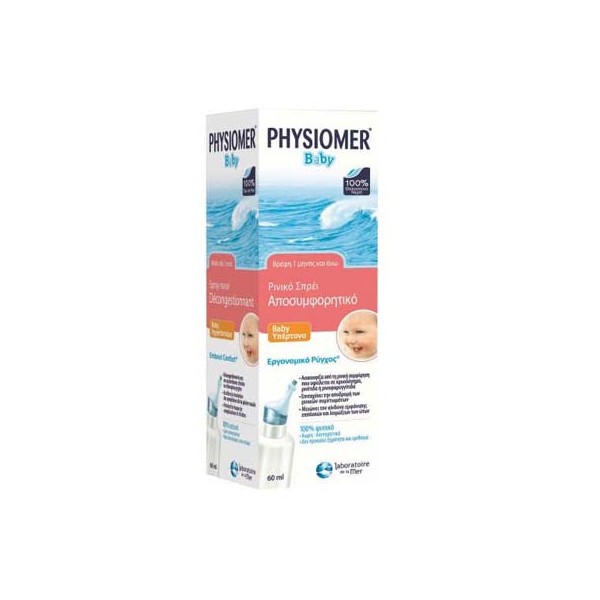 Επιταχύνει την υποχώρηση των ρινικών συμπτωμάτων. Μειώνει τον κίνδυνο εμφάνισης επιπλοκών και λοιμώξεων των αυτιών. 100% φυσικό. Χωρίς συντηρητικά. Δεν προκαλεί ξηρότητα και ερεθισμό. Περιορίζει τη χρήση τοπικών φαρμακευτικών σκευασμάτων. Με εργονομικό ρύγχος Comfort Tip και ήπιο εκνέφωμα (χωρίς προωθητικά αέρια). Ιατροτεχνολογικό προϊόν.Το Physiomer είναι μια πλήρης σειρά φυσικών προϊόντων ρινικής φροντίδας που περιέχουν 100% θαλασσινό νερό, τα οποία διατηρούν τις φυσικές ιδιότητες αποσυμφόρησης του θαλασσινού νερού του Saint Malo και ανακουφίζουν αποτελεσματικά από τα ρινικά συμπτώματα και τα συμπτώματα από τους ρινικούς κόλπους.