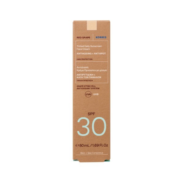 Εμπλουτισμένη με έναν μοναδικό συνδυασμό αντιηλιακών φίλτρων και δραστικών από Κόκκινο Σταφύλι, εκχύλισμα curcuma longa και κάρδαμο. Προστατεύει το δέρμα από την φωτογήρανση, βοηθάει στη μείωση των πανάδων και απαλύνει την εμφάνιση ρυτίδων, χαρίζοντας λάμψη, ομοιόμορφο τόνο και νεανική όψη.