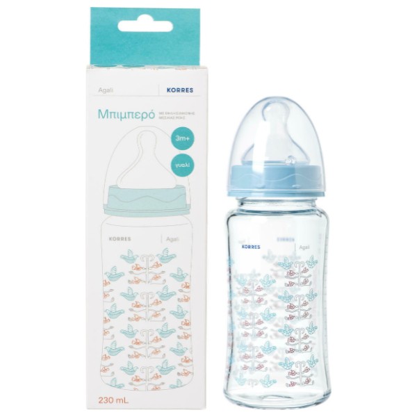 Το Korres Baby Γυάλινο Βρεφικό Μπιμπερό με Θηλή Σιλικόνης Μεσαίας Ροής 3m+ είναι ειδικά σχεδιασμένο για βρέφη από 3 μηνών και άνω, κατασκευασμένο από υψηλής ποιότητας βοριοπυριτικό γυαλί.