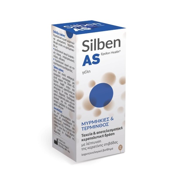 Η Epsilon Health Silben AS gel είναι μια γέλη κερατολυτικής αγωγής για τις μυρμηγκιές και για τη μολυσματική τέρμινθο.