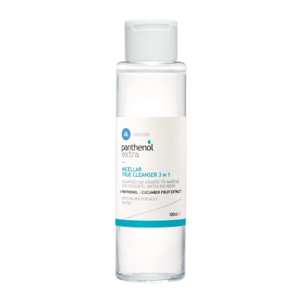 Το καθαριστικό προσώπου Micellar True Cleanser 3 σε 1 της Panthenol Extra, είναι ειδικά σχεδιασμένο (με τριπλή δράση) βάσει της Μικυλλιακής τεχνολογίας, ώστε να αφαιρεί το make-up, τους ρύπους και τη λιπαρότητα από το πρόσωπο, τα μάτια και τα χείλη. Εμπλουτισμένο με Πανθενόλη και Εκχύλισμα Αγγουριού αφήνει την επιδερμίδα απαλή, καθαρή, φρέσκια και αναζωογονημένη.
