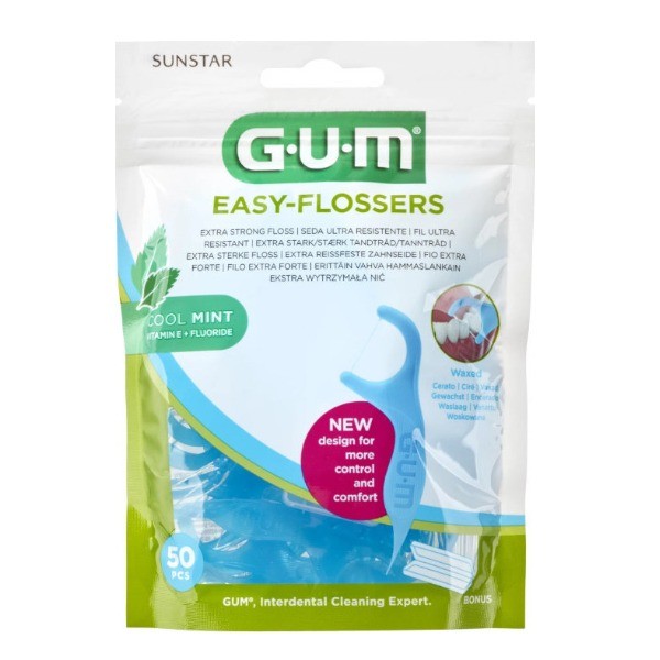 Το Gum Easy Flossers Cool Mint είναι ενα κηρωμένο οδοντικό νήμα, εξαιρετικά ανθεκτικό με φθόριο και βιταμίνη Ε . Αφαιρεί την πλακα και τα υπολείμματα τροφών, απαλά και αποτελεσματικά. Διαθέτει άνετη λαβή σχεδιασμένη ώστε να προσφλερει τον κατάλληλο έλεγχο για εύκολη χρήση.